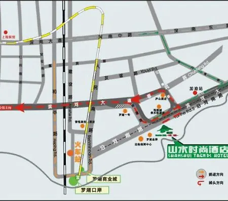 A hongkongi Fenling Lienho piac hozzávetőlegesen 4 km-re, a Sencsen Stadion pedig 4,1 km-es távolságra fekszik a hoteltől. A Sencsen városi Shanshui Business nagyjából egy 10 perces sétára található a San Uk Ling Firing Ground buszmegálló és kőhajításnyira a Shenzhen River. A Lizhi park szintén megtalálható 2 km-es távolságra a Sencsen városi ingatlantól. A Sencsen városi hotel továbbá területétől nem messze helyezkedik el a Lo Wu metróállomástól.